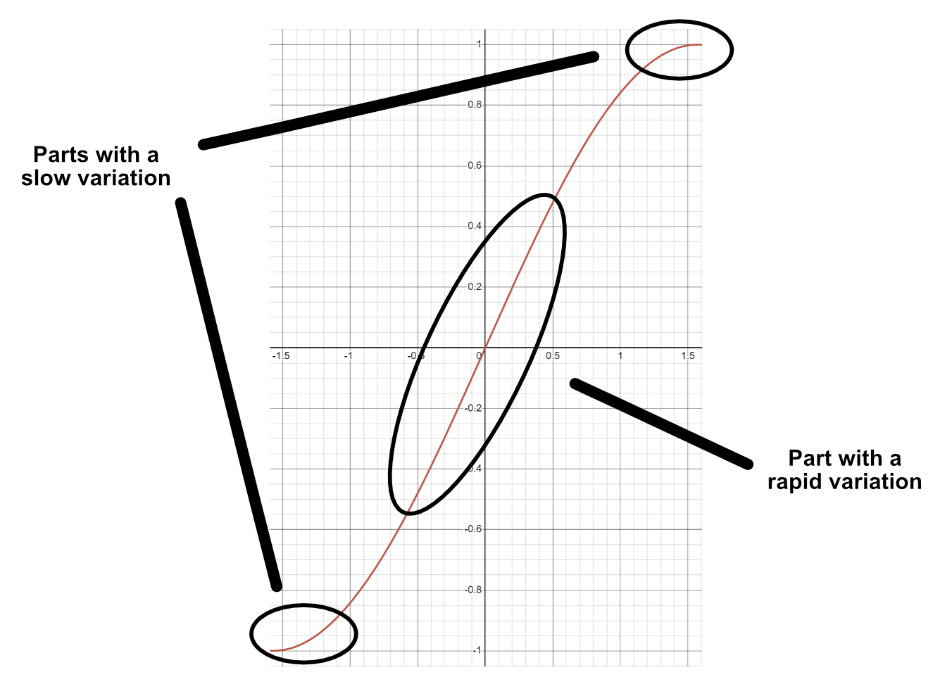 We are close to a circular trajectory though. Remember the detail I said I would come back to? Now is the time 😀. You see, the issue lies with the way the position of the sun evolves on the x-axis. It is not in the values, because we want our sun to take this path. But it is rather in its speed along the x-axis. To trace a proper circle, the sun should be faster in the center and slower towards the end and the beginning. And it is exactly the behavior of a sin curve on [-Pi/2, Pi/2]: slow at the start, fast in the middle, and slow when reaching the top.