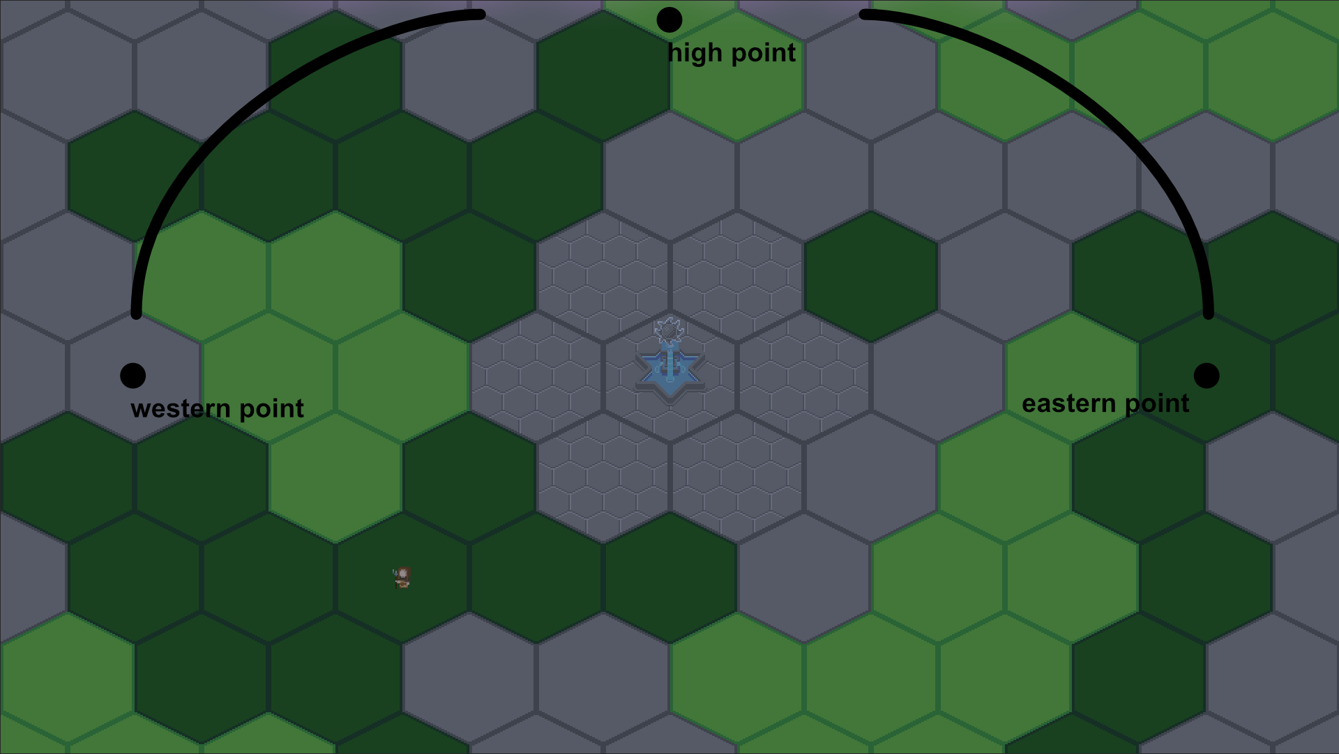 I first thought about storing a third position vector for the high point but when working with circular motion, it is way easier to work with a center point and a radius. So let's ditch the position vectors and go with that.